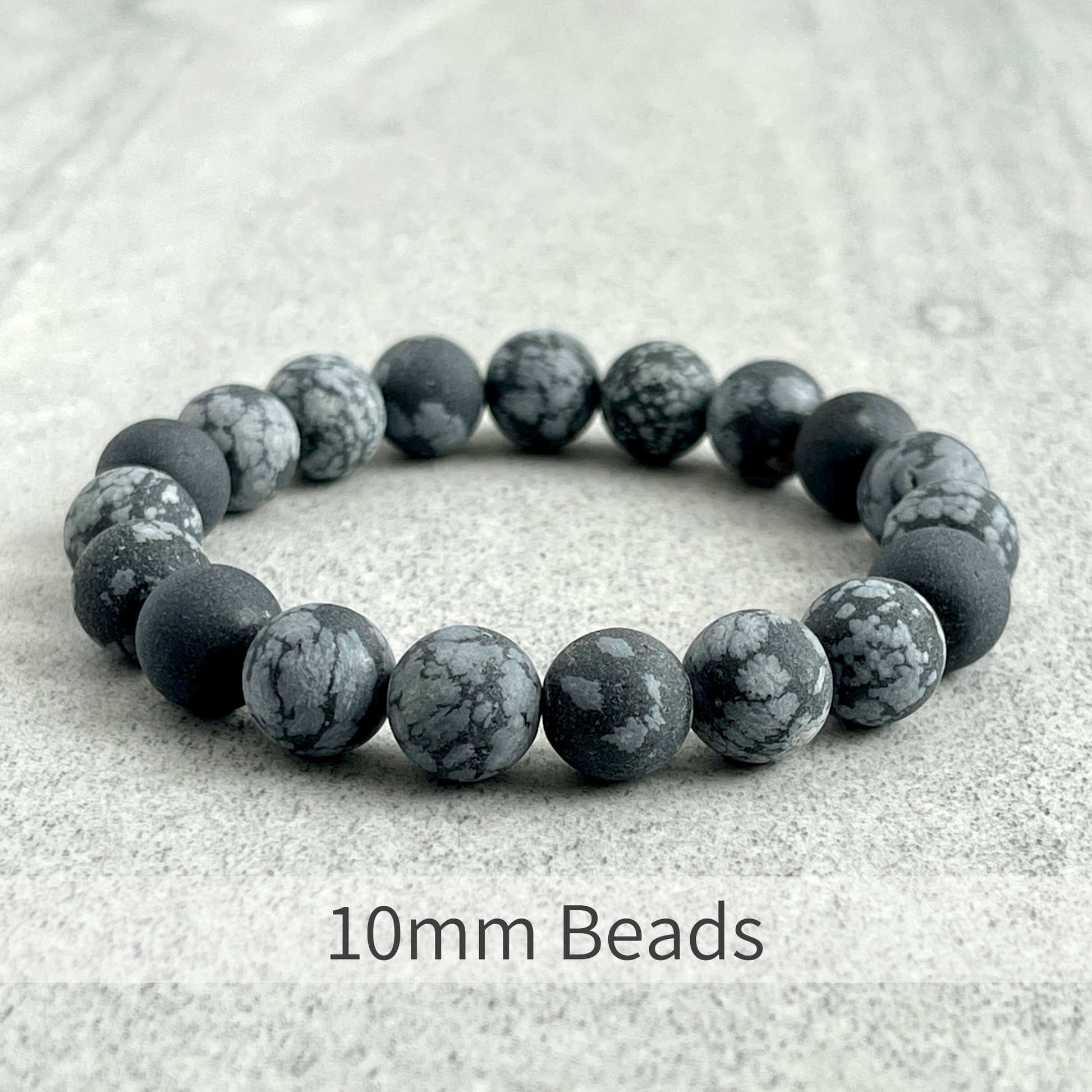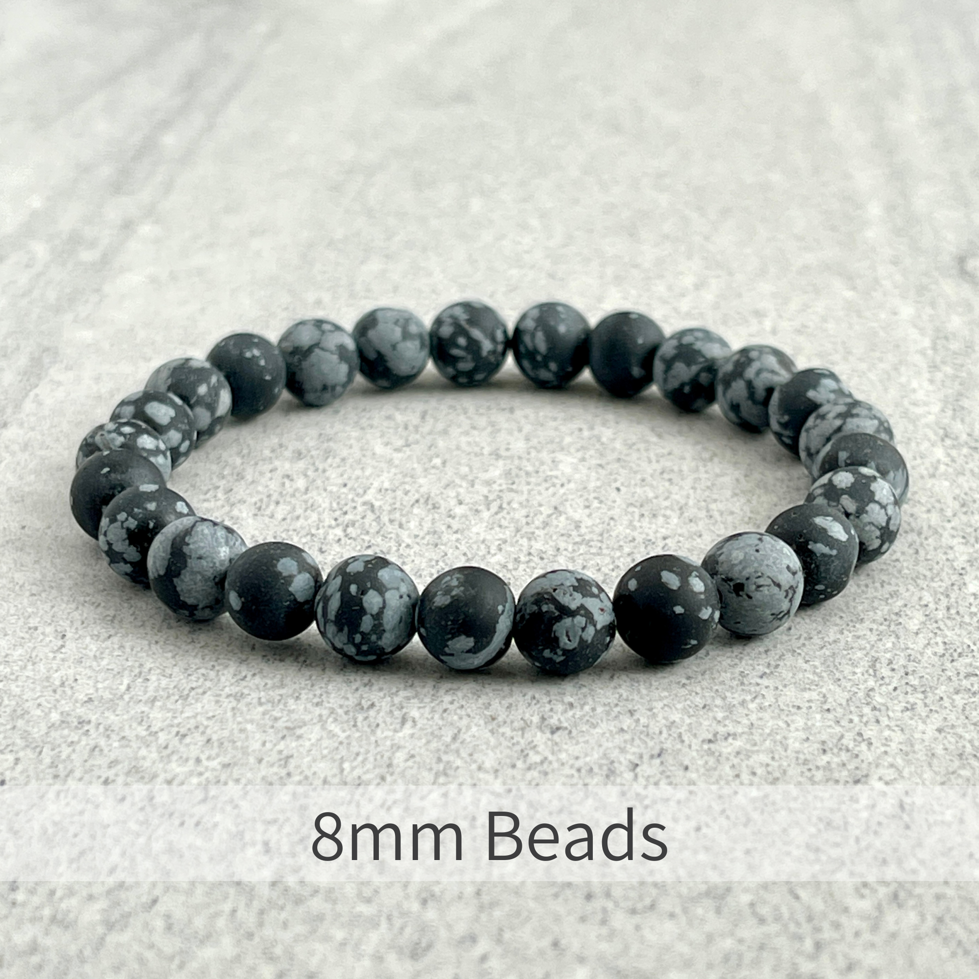 ~ 6mm, 8mm or 10mm Matte Snowflake Obsidian beads. Choose your bead size.