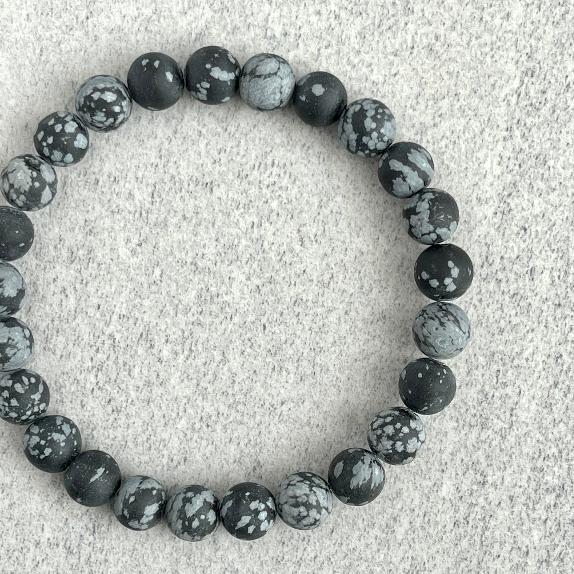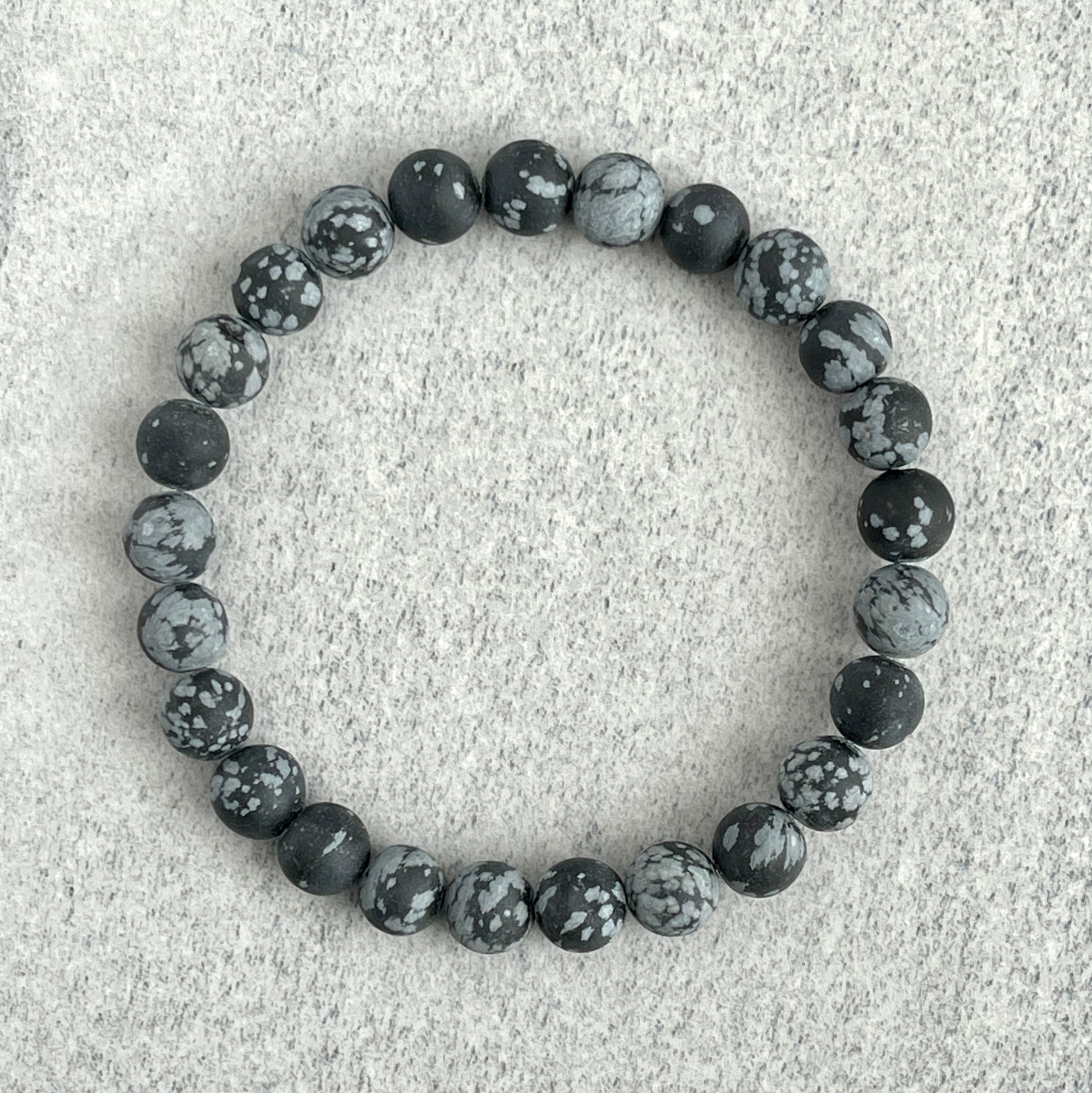 Matte Snowflake Obsidian Beaded Stretch Bracelet