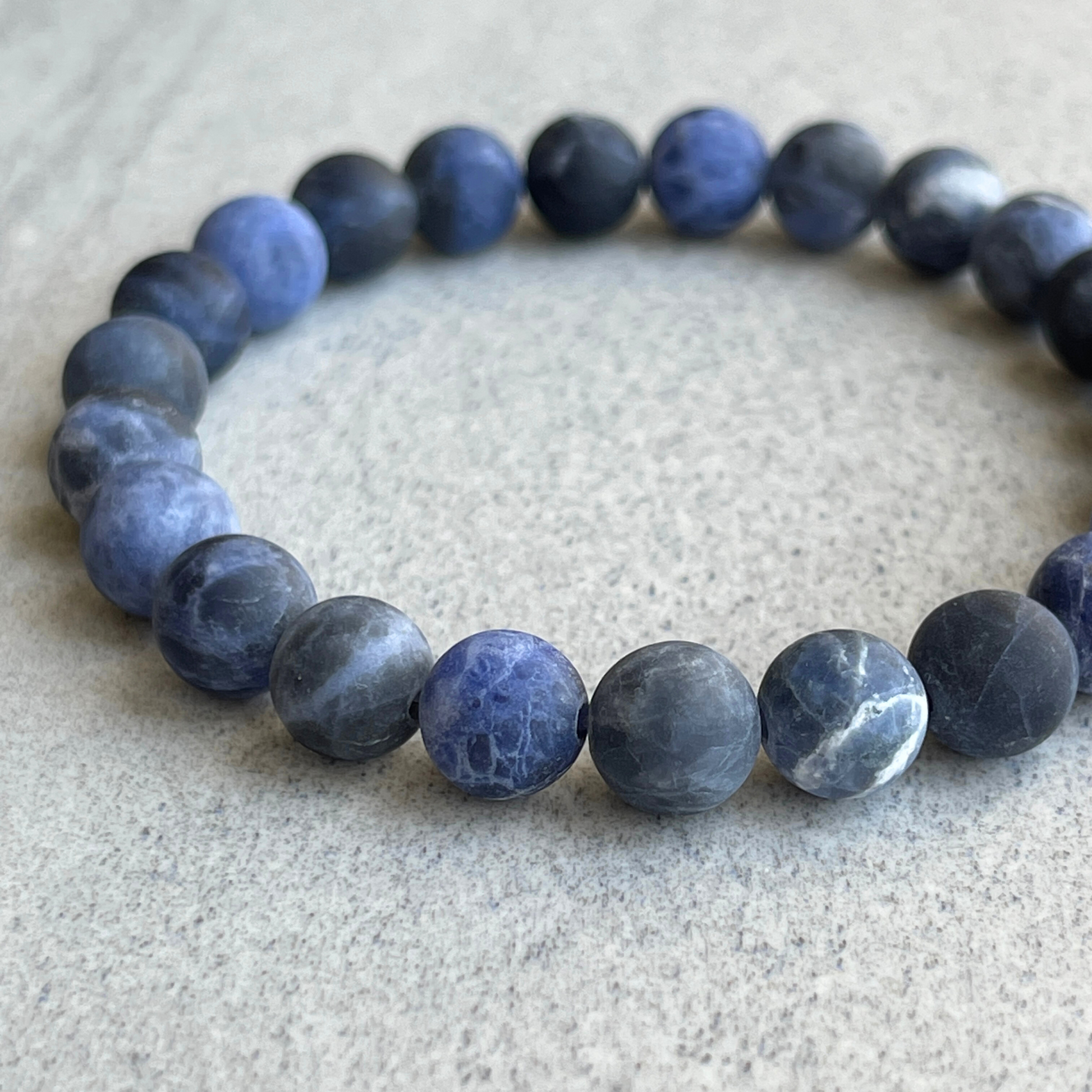 ~Matte Sodalite Beaded Bracelet: Crafted with care, using high-quality stretchy cord for effortless wear. Simply slide the bracelet on and off your wrist for instant style and comfort.