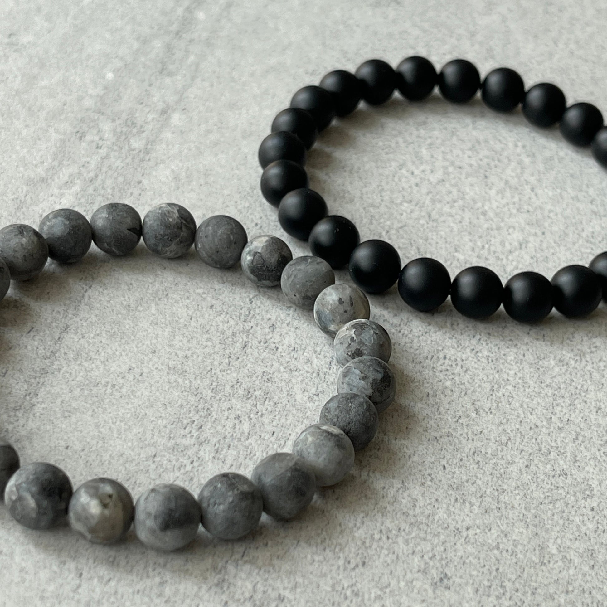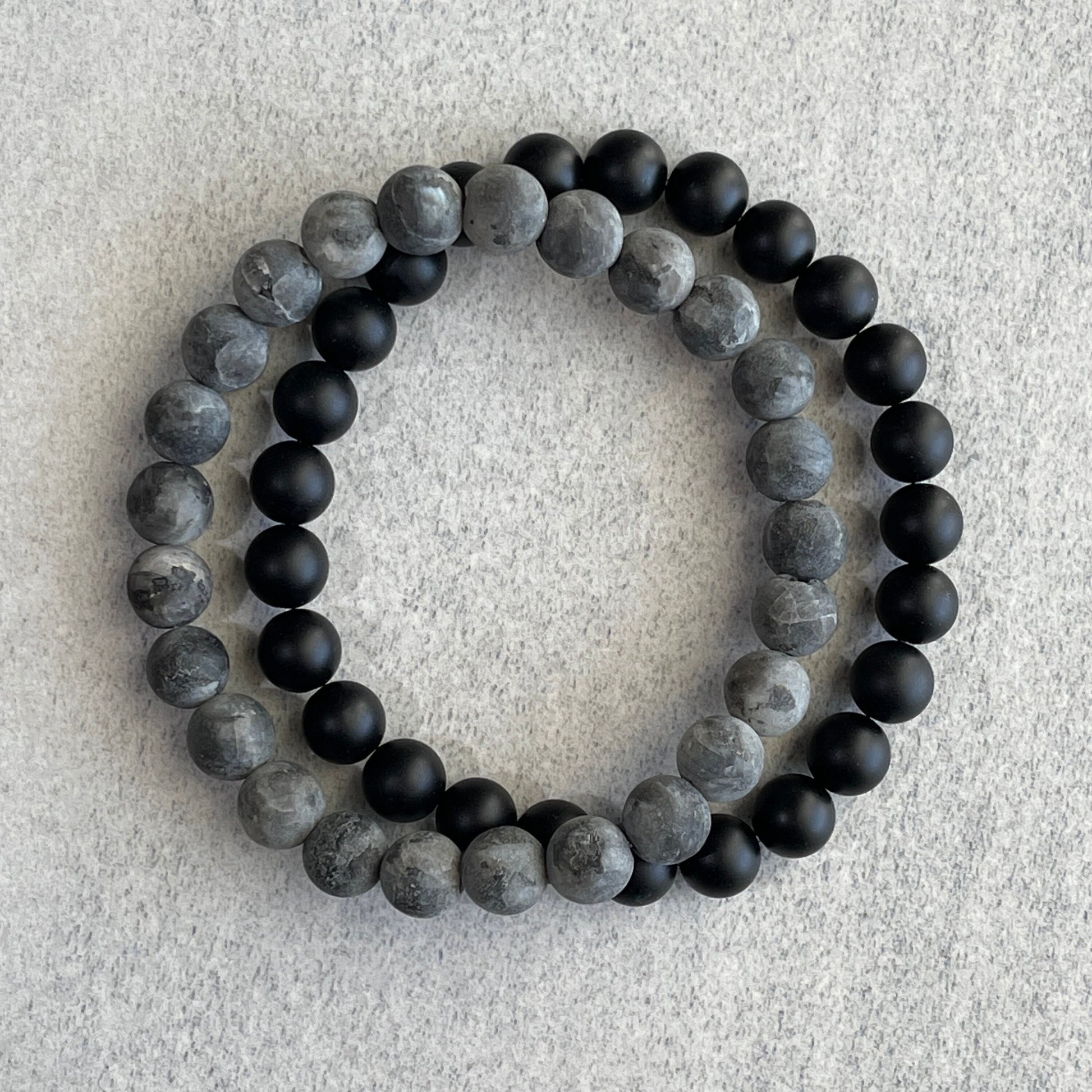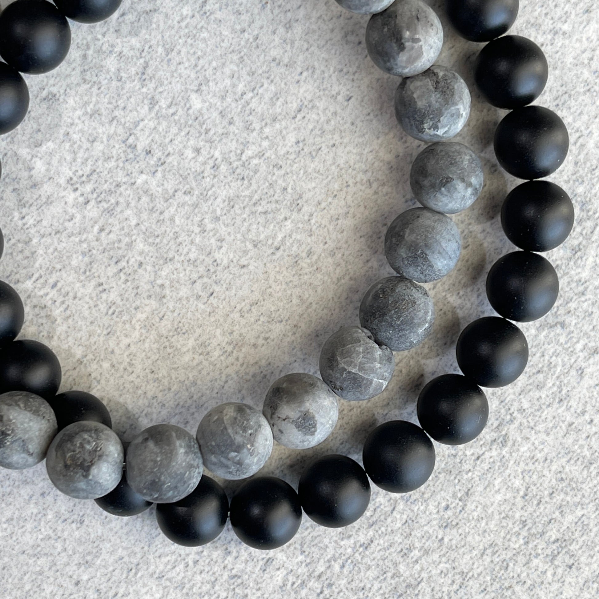 Matte Onyx and Matte Black Labradorite/Larvikite Stretch Bracelet