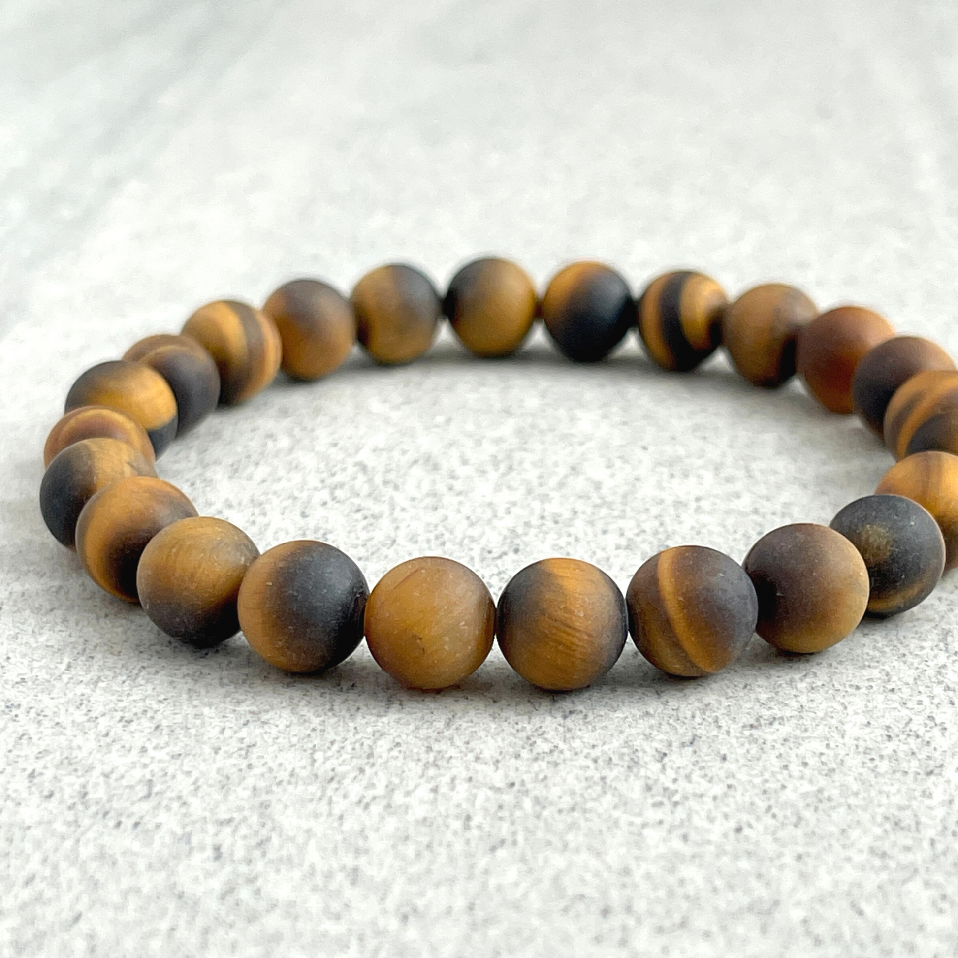 Matte Yellow Tiger Eye Beaded Stretch Bracelet