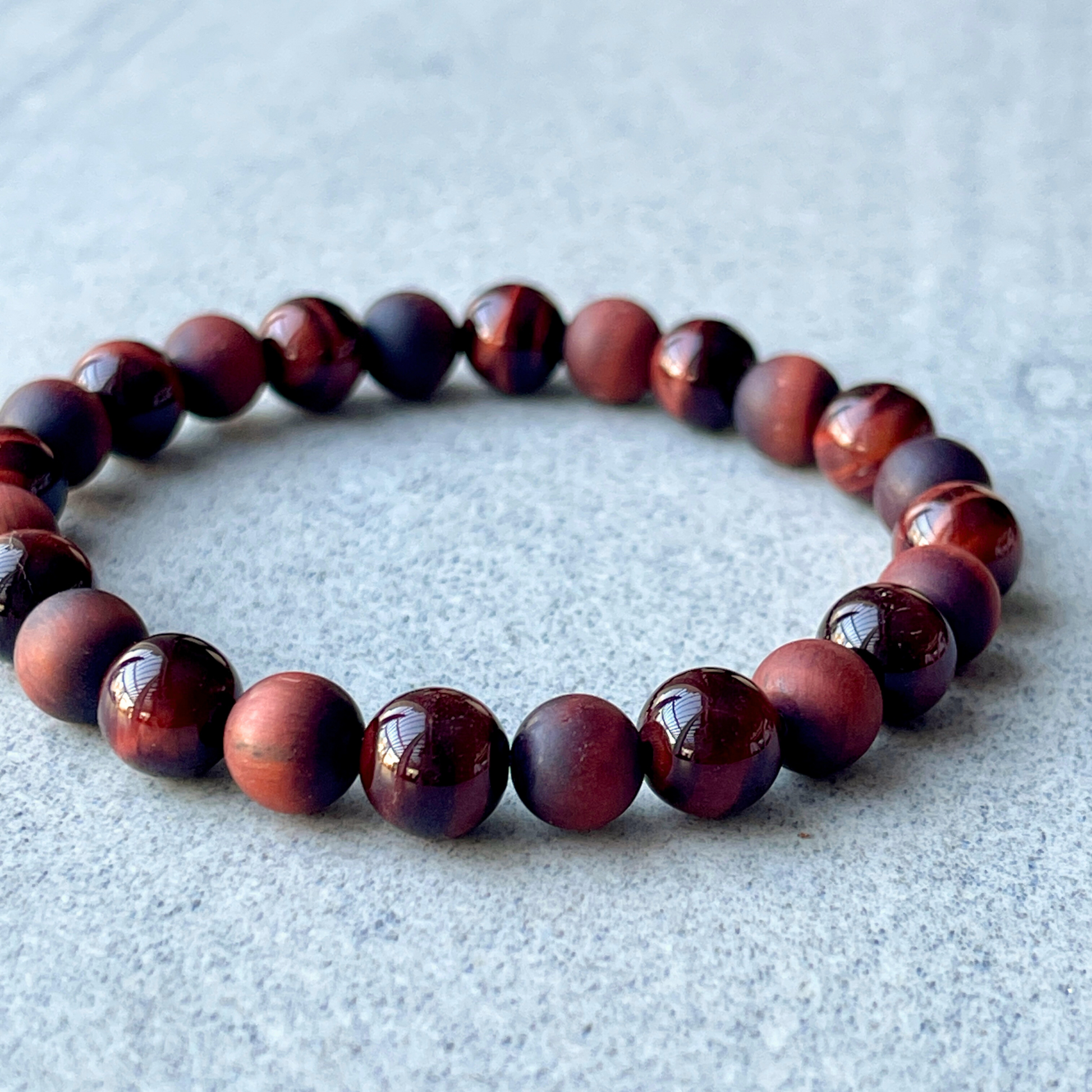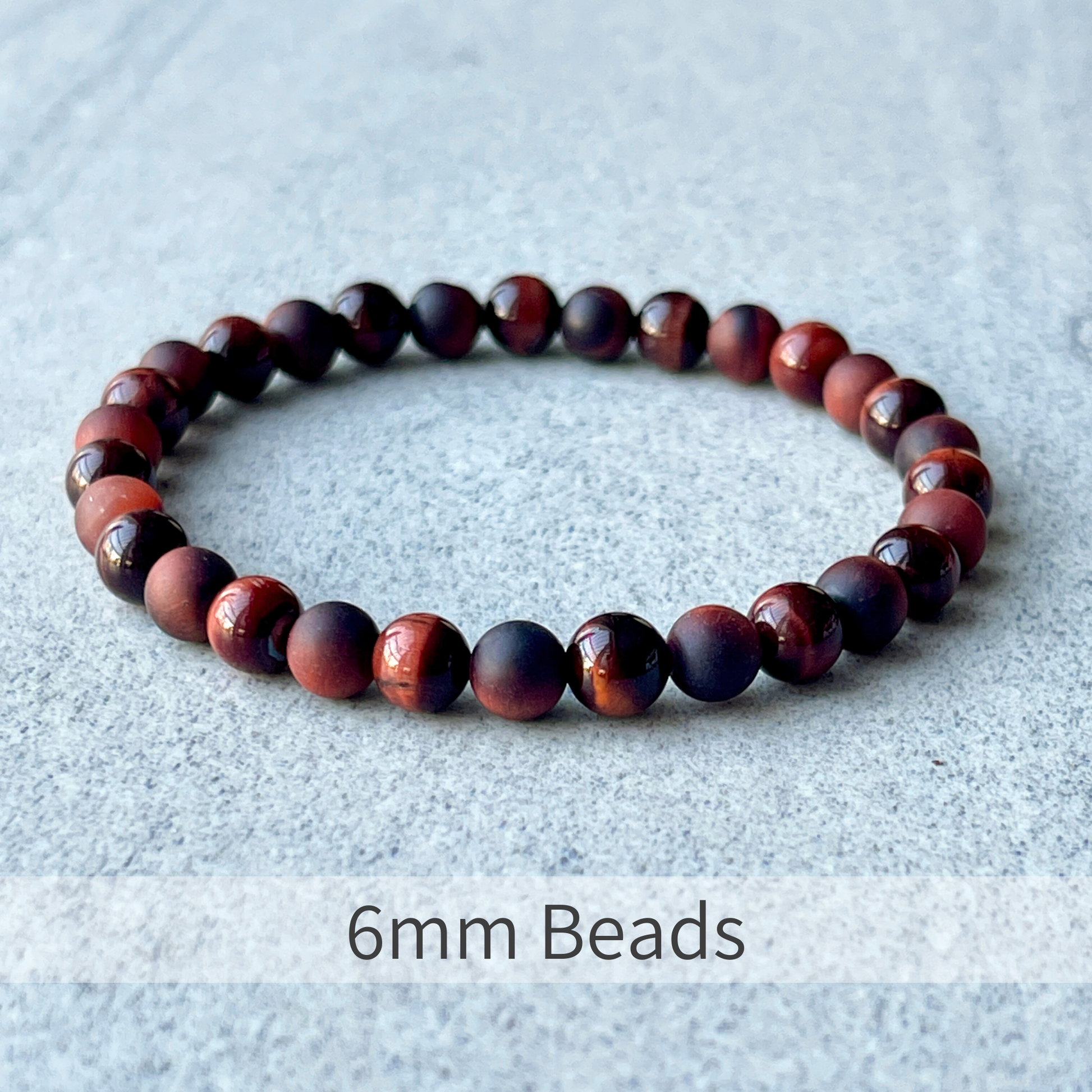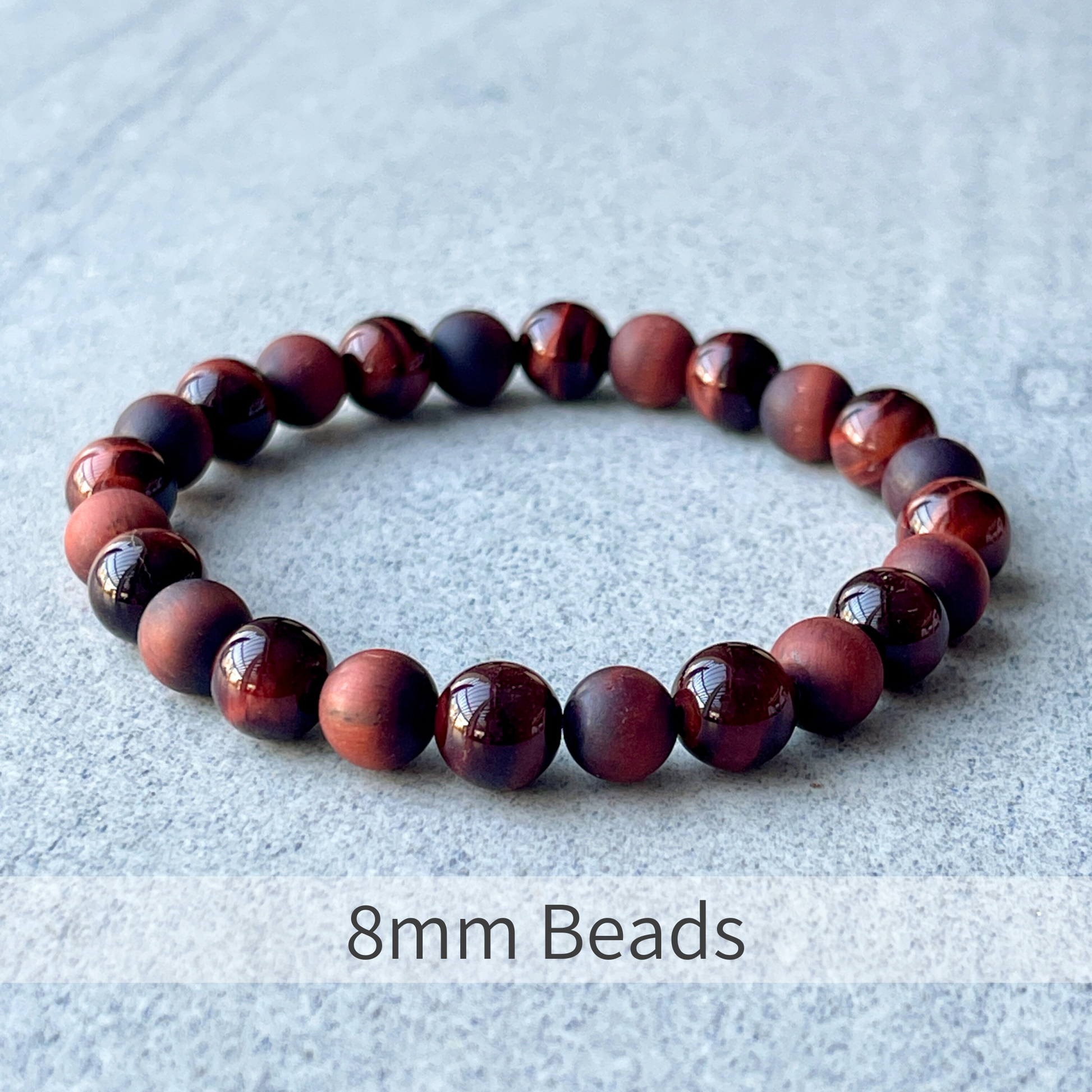 ~ 6mm, 8mm or 10mm alternating matte and glossy Red Tiger Eye beads
