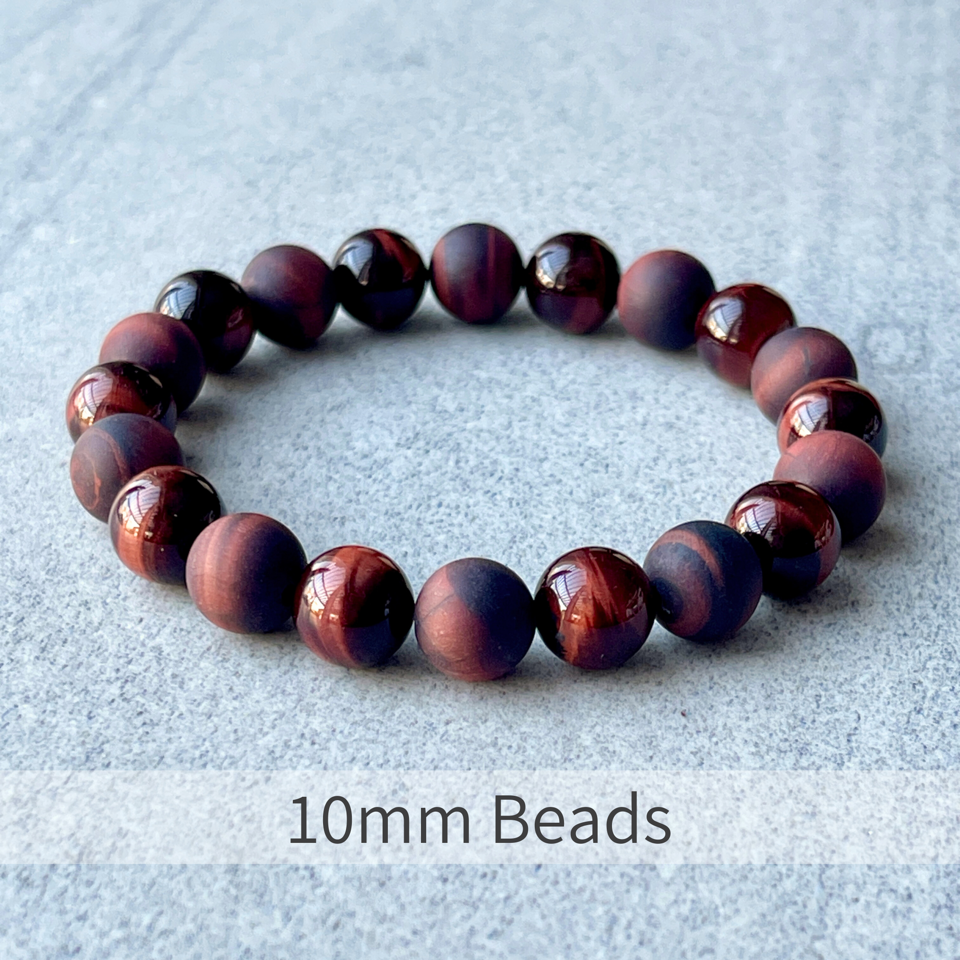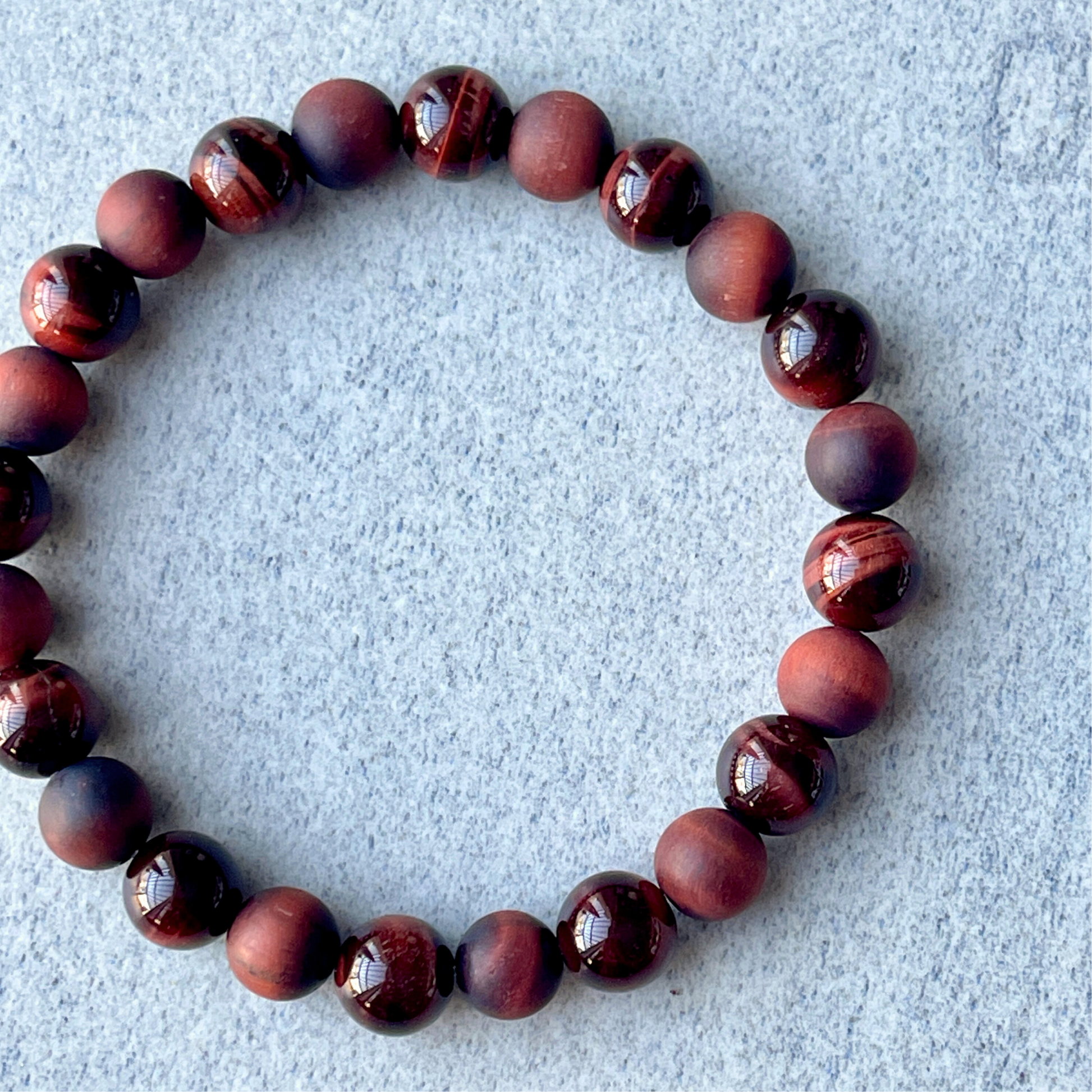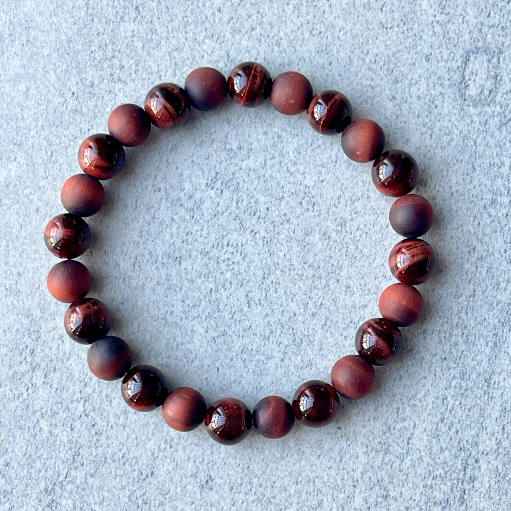 ~ 6mm, 8mm or 10mm alternating matte and glossy Red Tiger Eye beads